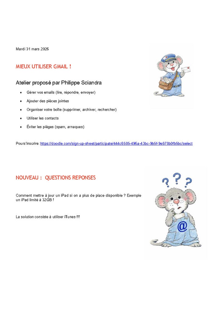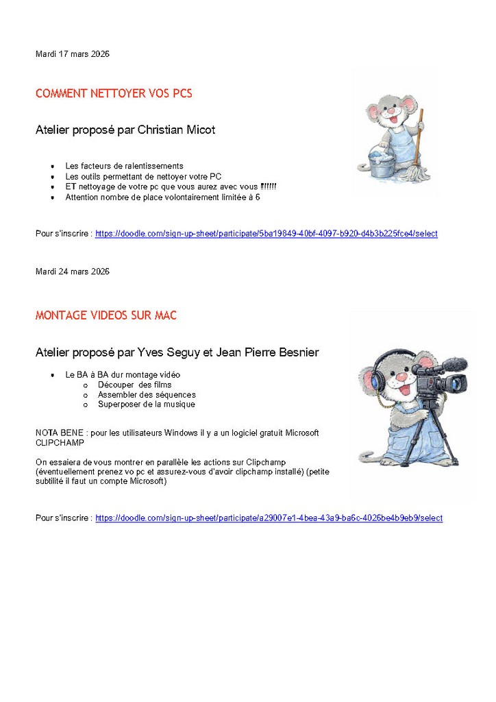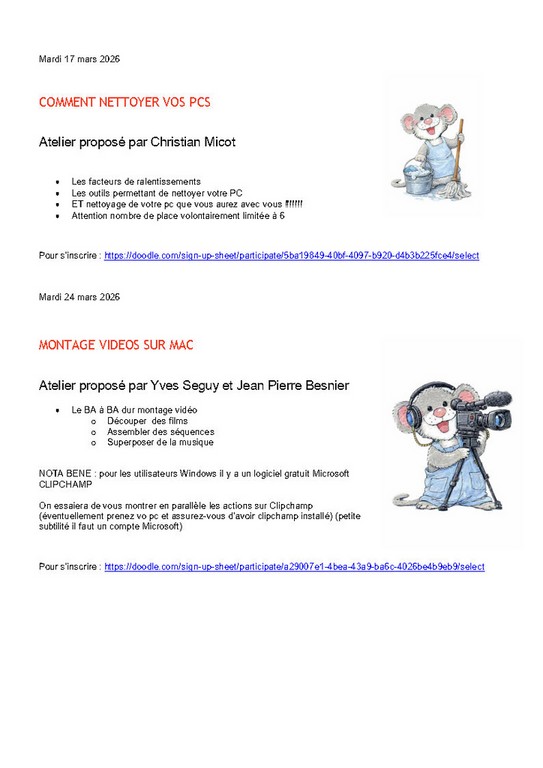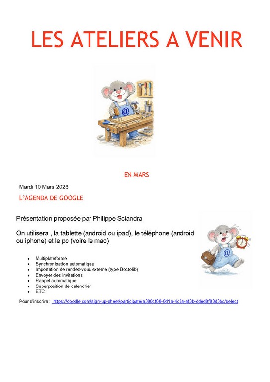 Télécharger la Newsletter : vous aurez les liens en direct pour les inscriptions aux ateliers